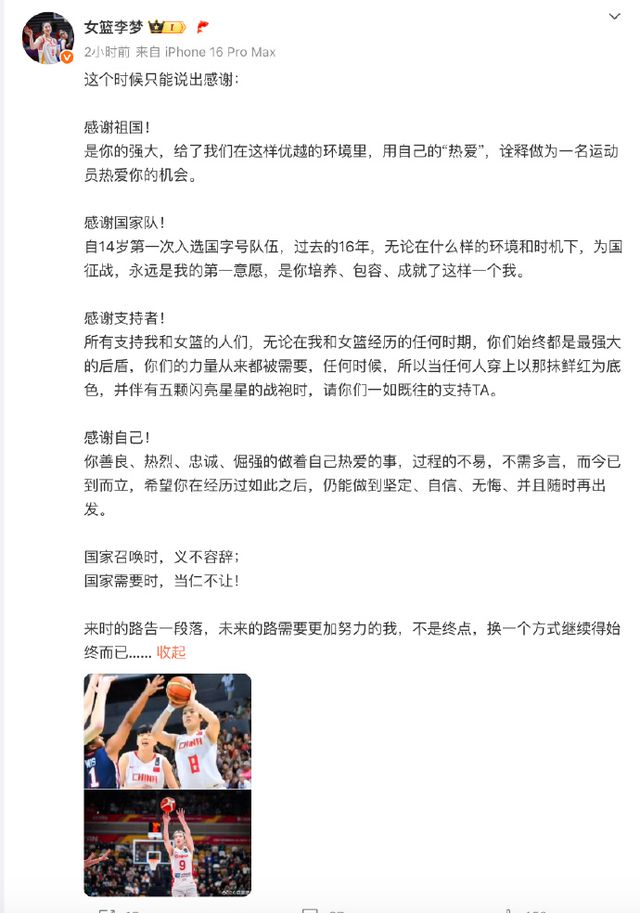 李梦深夜发长文致谢国家,致谢球迷,致谢所有支持者。